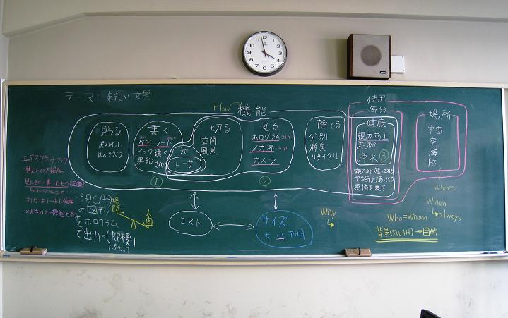 発想を広げるために,人間の能力を生かした技法であり,発散と収束の二つが存在します.この実験では,テーマ「新しい文具」をもとに発散(ブレインストーミング)のマインドマップと収束のKJ法,5W1H法を用いて,企画・立案を行います.