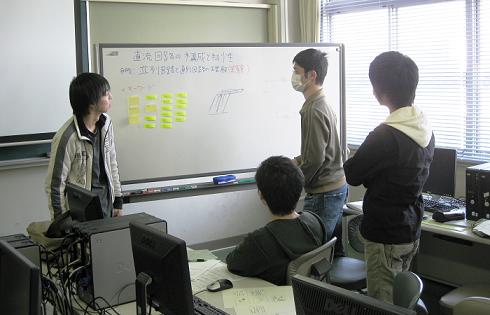 グループでディスカッションし,アイディアを出していきます.アイディアの偏りがないか,全員がブレインストーミングに参加しているか,制限時間を超えていないかなどに注意します.
